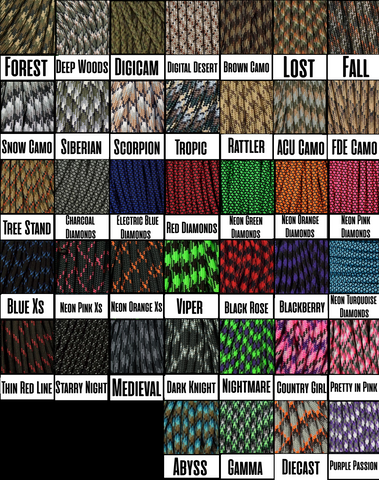 The barbed cobra weave allows for the choice of up to 3 colors - see color charts. Choose colors #1-3 using color placement image as a guide.